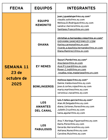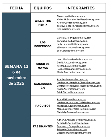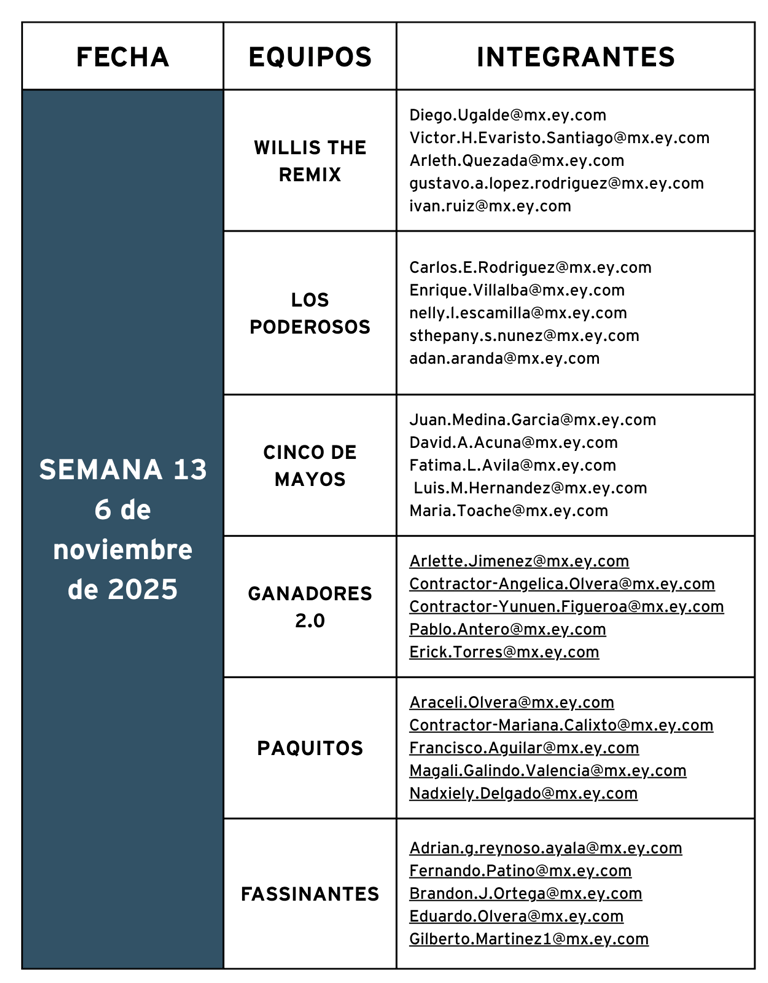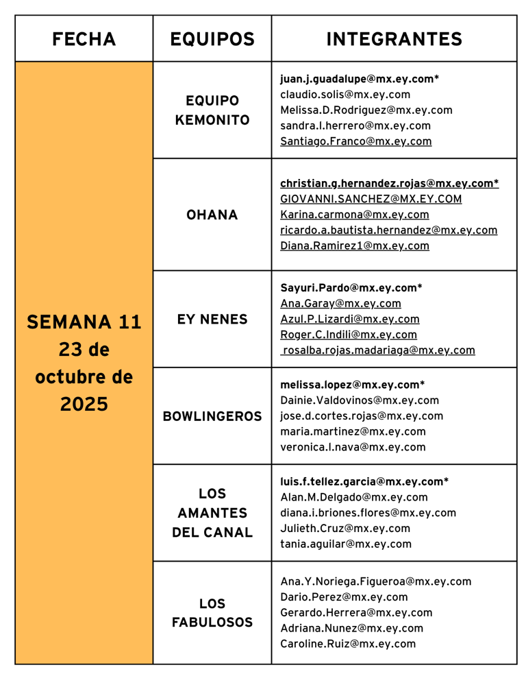 *El capitán de cada uno de los equipos es el primero en cada lista de integrantes